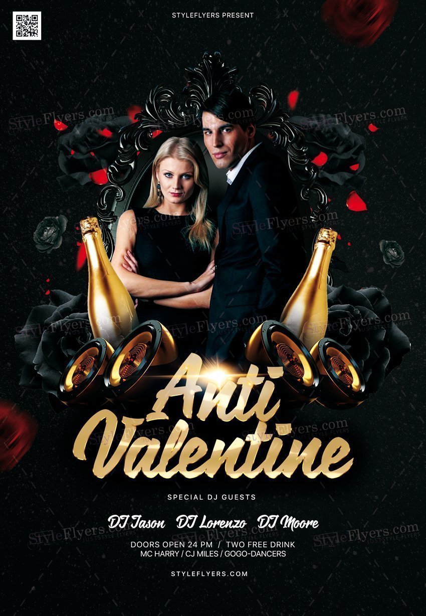 Anti-Valentine-PSD-Flyer-Template PSD Template Package – Professional PSD template. Fully layered, easy to customize, print-ready. Includes free fonts. StyleFlyers quality since 2013.
