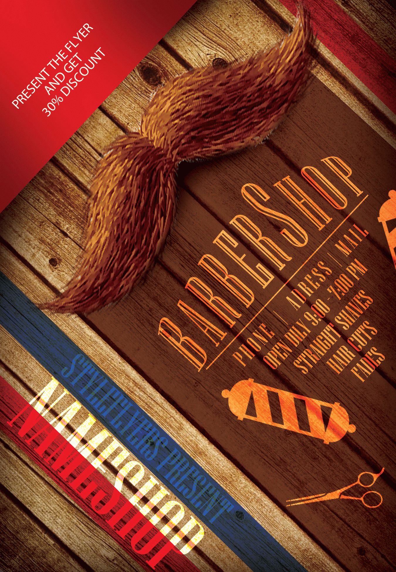 barbershop PSD Template Package – Professional PSD template. Fully layered, easy to customize, print-ready. Includes free fonts. StyleFlyers quality since 2013.