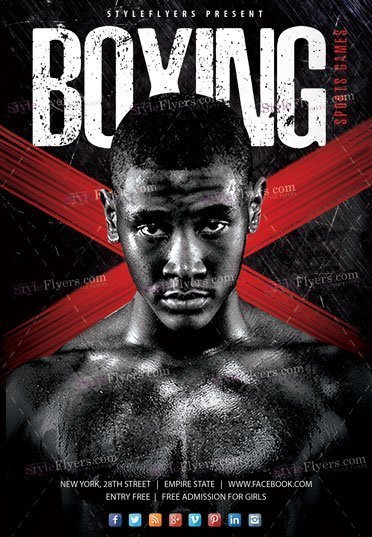 Boxing-Sports-Games-Flyer PSD Template Package – Professional PSD template. Fully layered, easy to customize, print-ready. Includes free fonts. StyleFlyers quality since 2013.