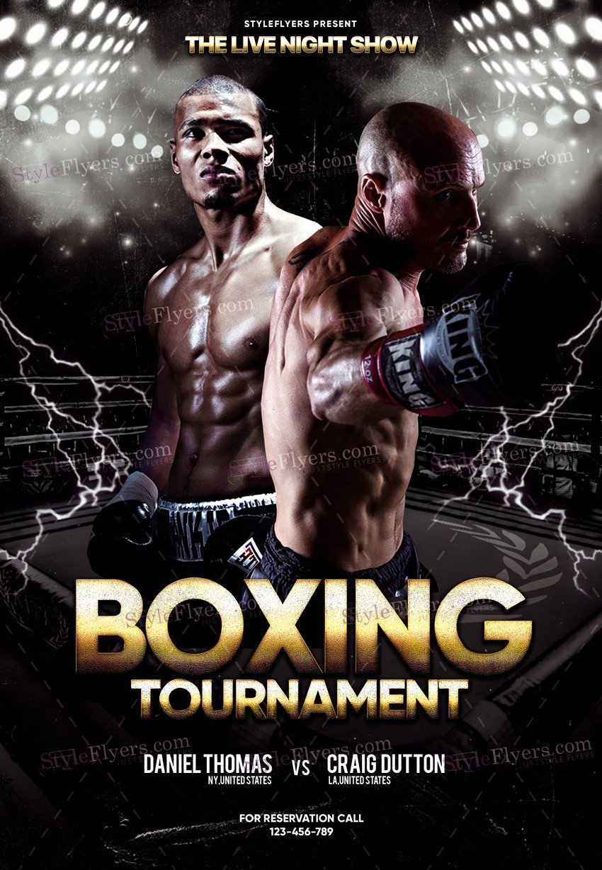 Boxing-Tournament-PSD-Flyer-Template PSD Template Package – Professional PSD template. Fully layered, easy to customize, print-ready. Includes free fonts. StyleFlyers quality since 2013.
