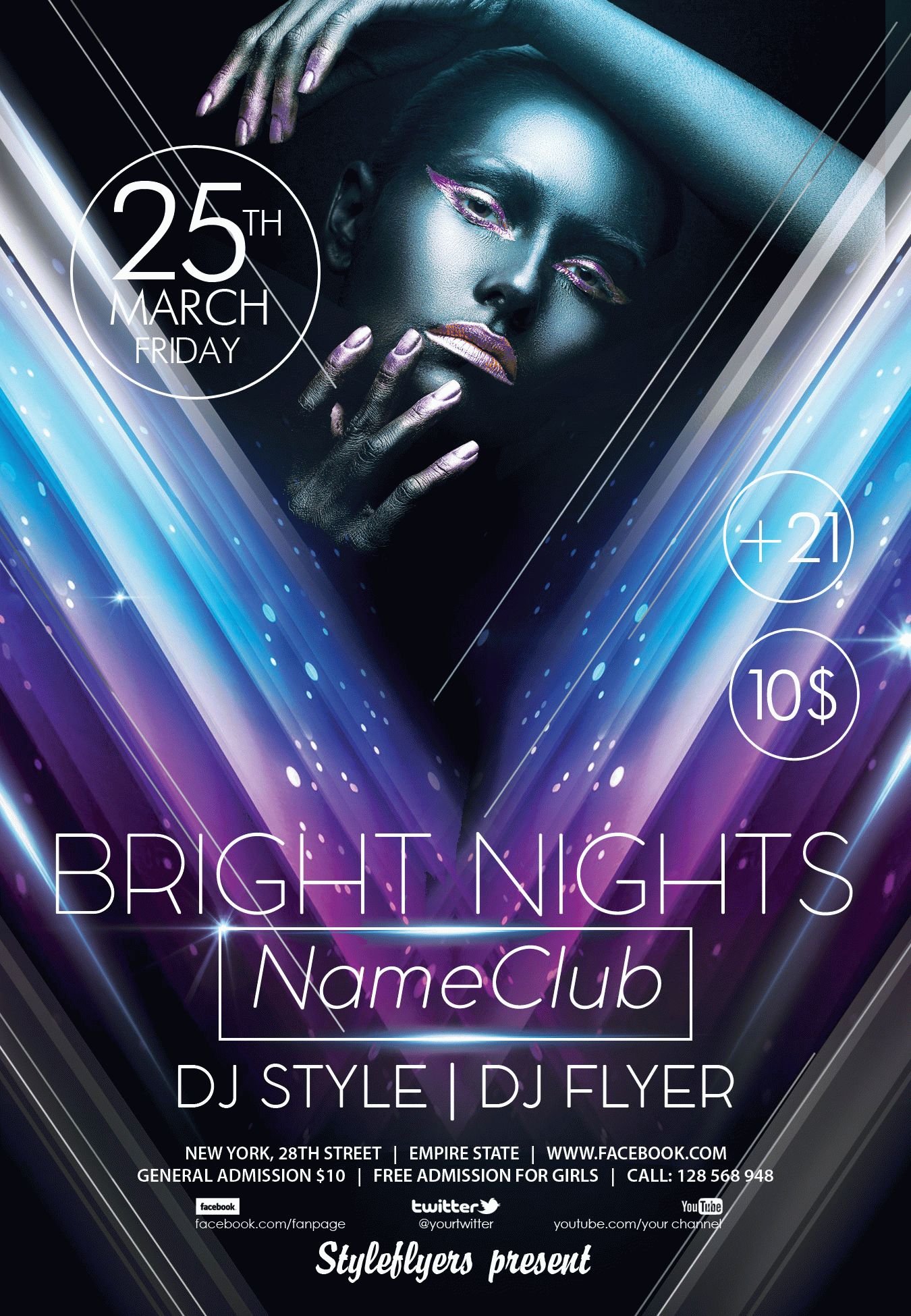 bright-nights PSD Template Package – Professional PSD template. Fully layered, easy to customize, print-ready. Includes free fonts. StyleFlyers quality since 2013.