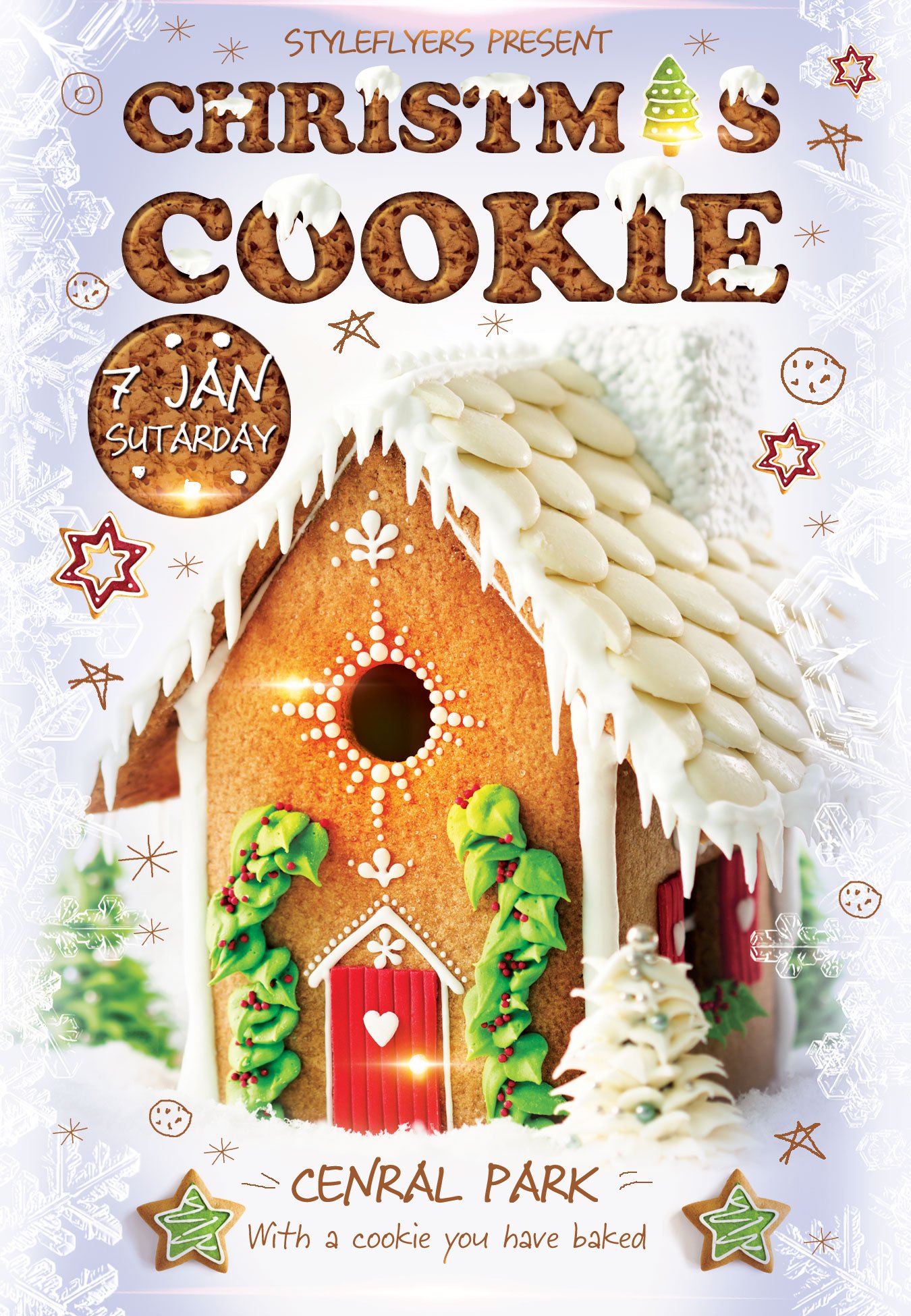 Christmas-cookie-Party-flyer PSD Template Package – Professional PSD template. Fully layered, easy to customize, print-ready. Includes free fonts. StyleFlyers quality since 2013.