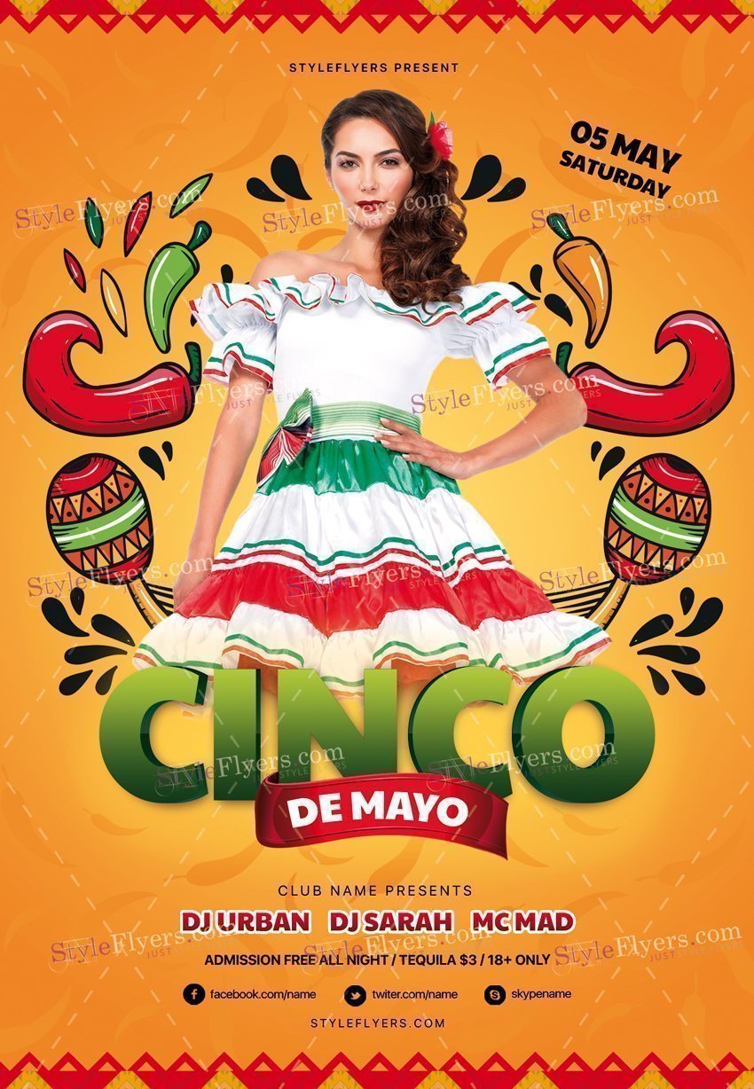 Cinco-De-Mayo-PSD-Flyer-Template1 PSD Template Package – Professional PSD template. Fully layered, easy to customize, print-ready. Includes free fonts. StyleFlyers quality since 2013.