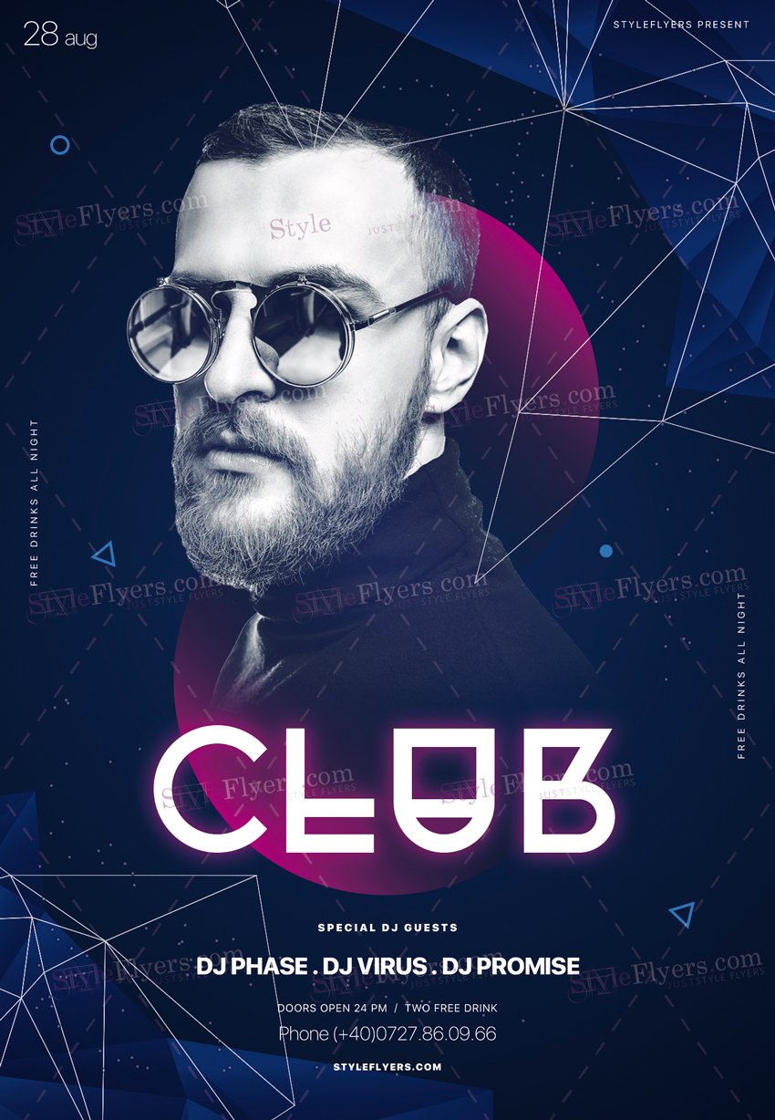 Club-PSD-Flyer-Template PSD Template Package – Professional PSD template. Fully layered, easy to customize, print-ready. Includes free fonts. StyleFlyers quality since 2013.