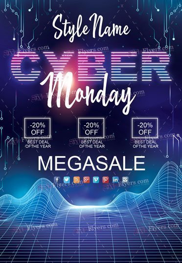 Cyber-Monday-PSD-Flyer-Template1 PSD Template Package – Professional PSD template. Fully layered, easy to customize, print-ready. Includes free fonts. StyleFlyers quality since 2013.
