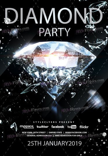 Diamond-PSD-Flyer-Template PSD Template Package – Professional PSD template. Fully layered, easy to customize, print-ready. Includes free fonts. StyleFlyers quality since 2013.