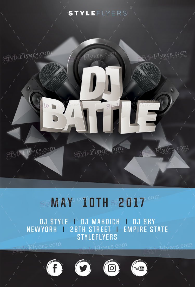 Dj-Battle_free_flyer PSD Template Package – Professional PSD template. Fully layered, easy to customize, print-ready. Includes free fonts. StyleFlyers quality since 2013.