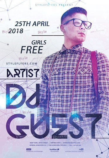 DJ-PSD-Flyer-Template PSD Template Package – Professional PSD template. Fully layered, easy to customize, print-ready. Includes free fonts. StyleFlyers quality since 2013.