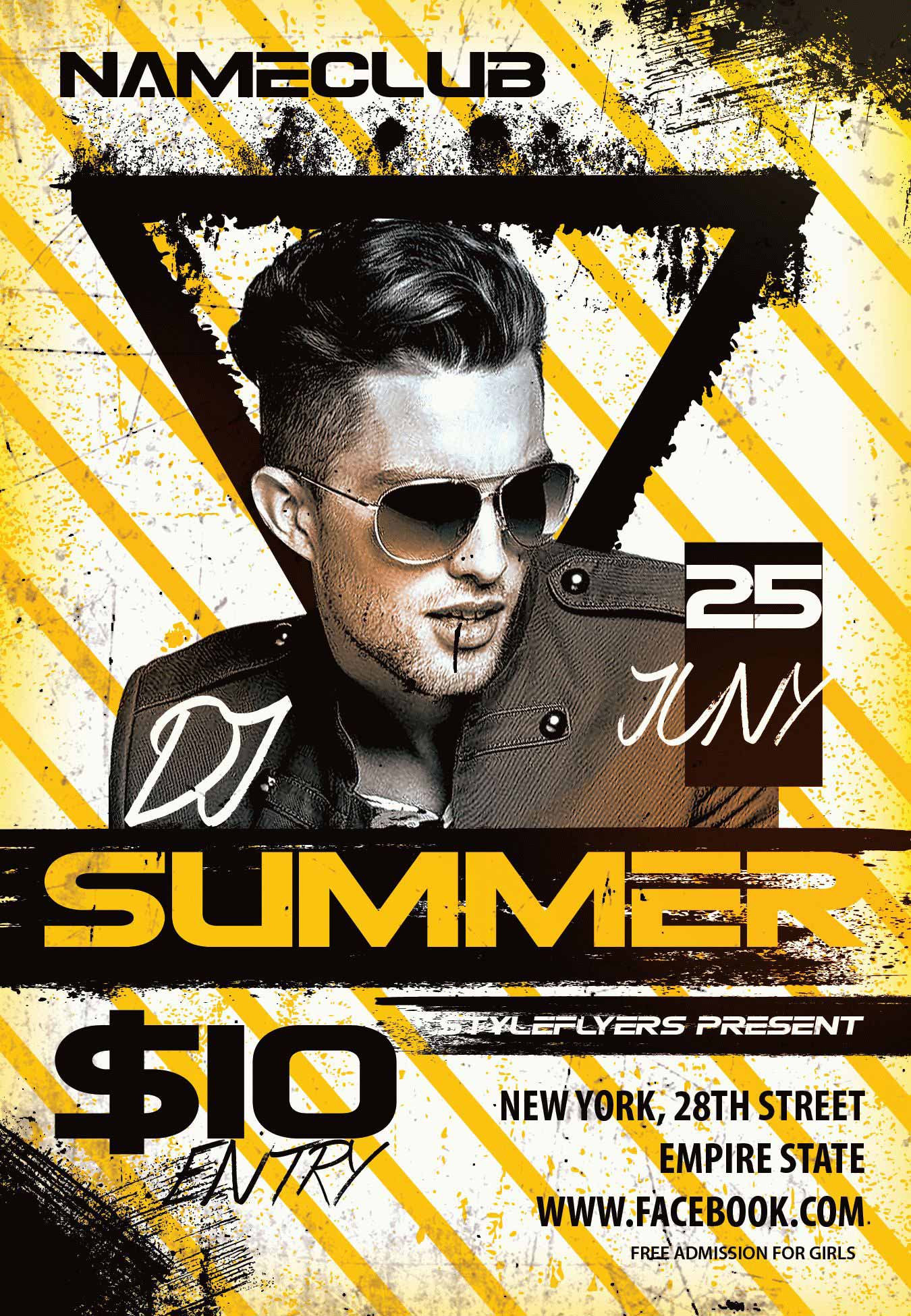 dj-summer PSD Template Package – Professional PSD template. Fully layered, easy to customize, print-ready. Includes free fonts. StyleFlyers quality since 2013.