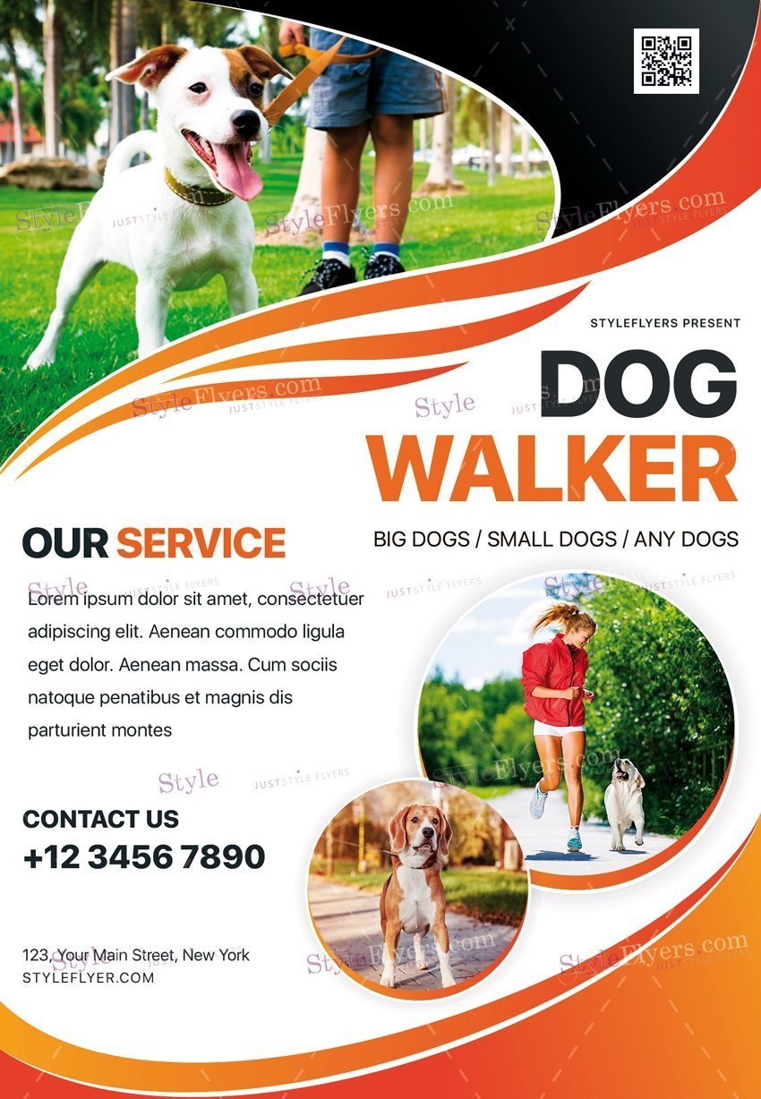 Dog-Walker-PSD-Flyer-Template PSD Template Package – Professional PSD template. Fully layered, easy to customize, print-ready. Includes free fonts. StyleFlyers quality since 2013.