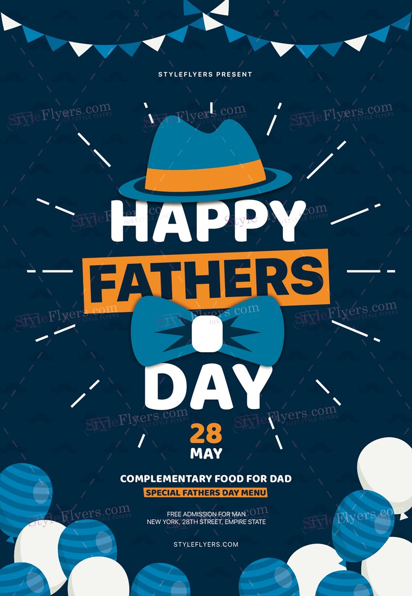Fathers-Day-PSD-Flyer-Template1 PSD Template Package – Professional PSD template. Fully layered, easy to customize, print-ready. Includes free fonts. StyleFlyers quality since 2013.