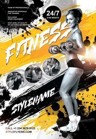 Fitness-PSD-Flyer-Template PSD Template Package – Professional PSD template. Fully layered, easy to customize, print-ready. Includes free fonts. StyleFlyers quality since 2013.