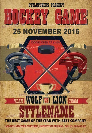 Hockey-PSD-Flyer-Template PSD Template Package – Professional PSD template. Fully layered, easy to customize, print-ready. Includes free fonts. StyleFlyers quality since 2013.