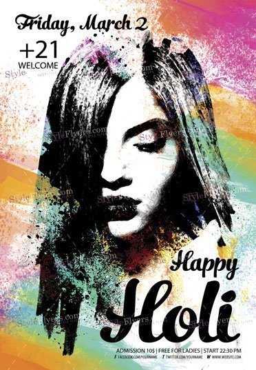 Holi PSD Template Package – Professional PSD template. Fully layered, easy to customize, print-ready. Includes free fonts. StyleFlyers quality since 2013.