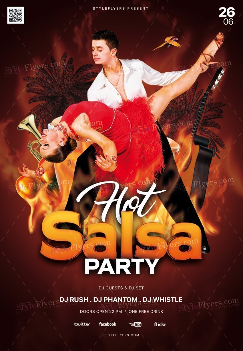 Hot-Salsa-Party-PSD-Flyer-Template PSD Template Package – Professional PSD template. Fully layered, easy to customize, print-ready. Includes free fonts. StyleFlyers quality since 2013.