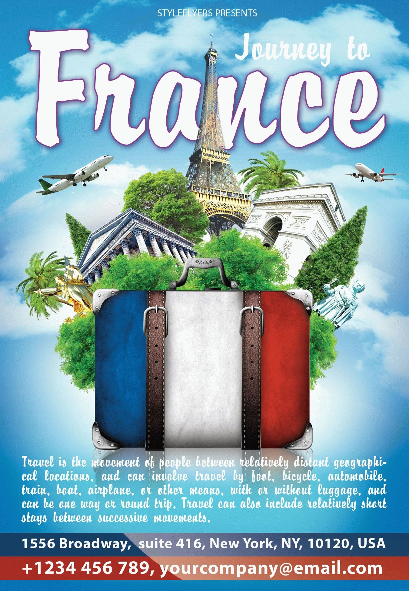 Journey-to-France PSD Template Package – Professional PSD template. Fully layered, easy to customize, print-ready. Includes free fonts. StyleFlyers quality since 2013.