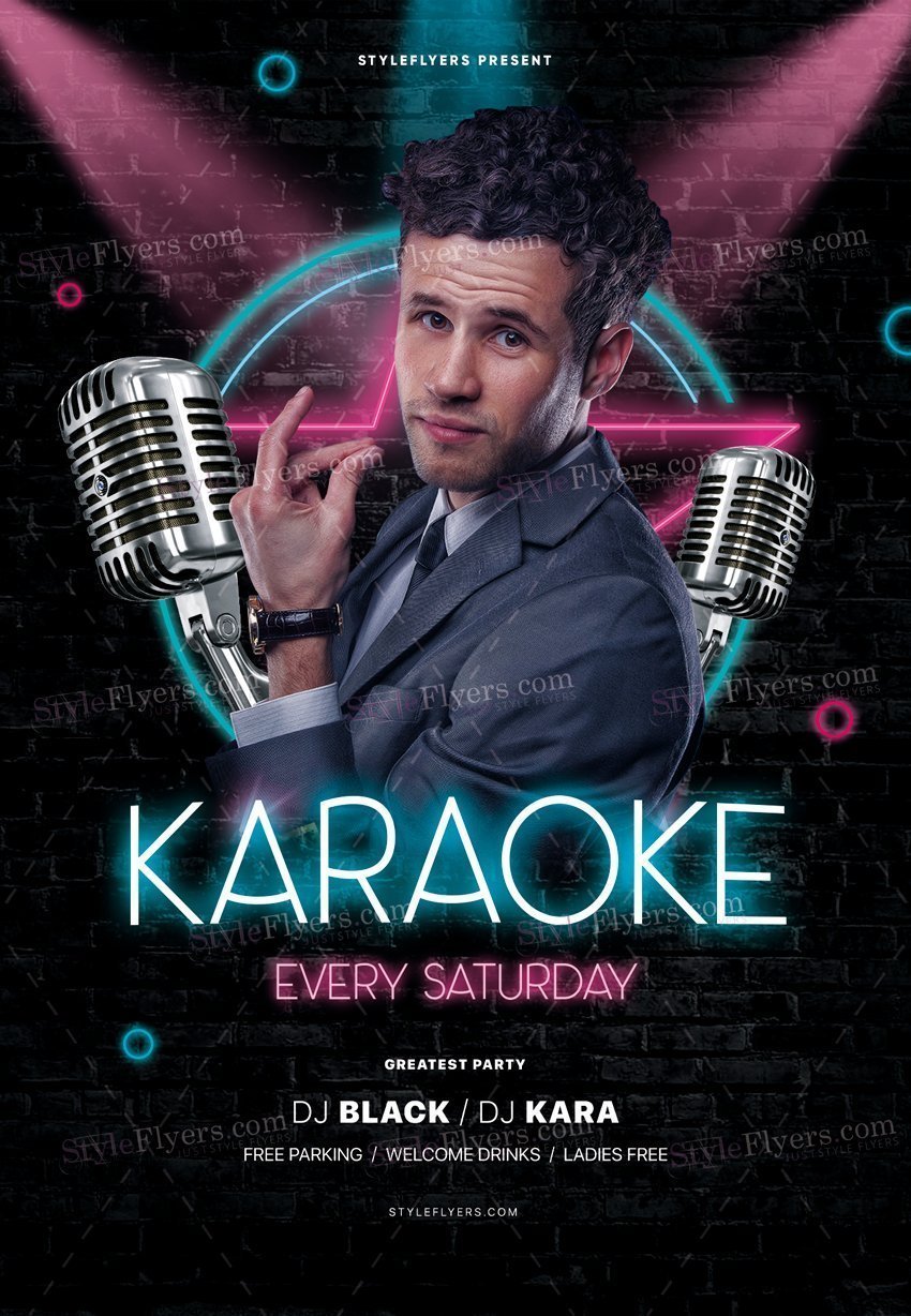 Karaoke_psd_flyer PSD Template Package – Professional PSD template. Fully layered, easy to customize, print-ready. Includes free fonts. StyleFlyers quality since 2013.