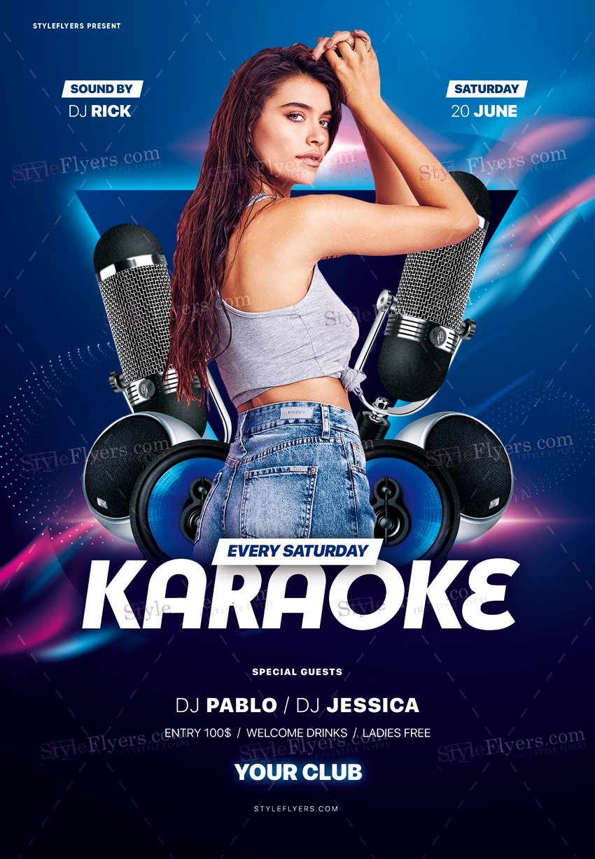 Karaoke-PSD-Flyer-Template PSD Template Package – Professional PSD template. Fully layered, easy to customize, print-ready. Includes free fonts. StyleFlyers quality since 2013.