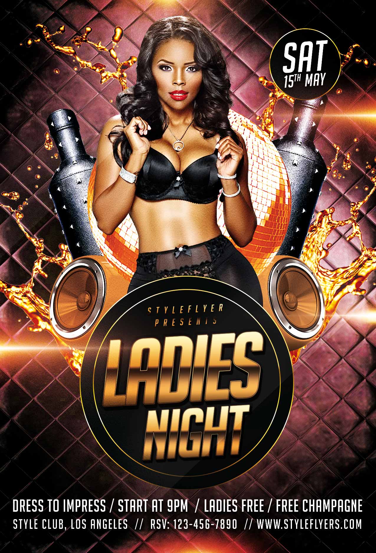 Ladies-Night PSD Template Package – Professional PSD template. Fully layered, easy to customize, print-ready. Includes free fonts. StyleFlyers quality since 2013.
