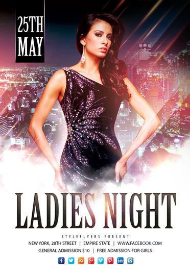 Ladies-night1 PSD Template Package – Professional PSD template. Fully layered, easy to customize, print-ready. Includes free fonts. StyleFlyers quality since 2013.