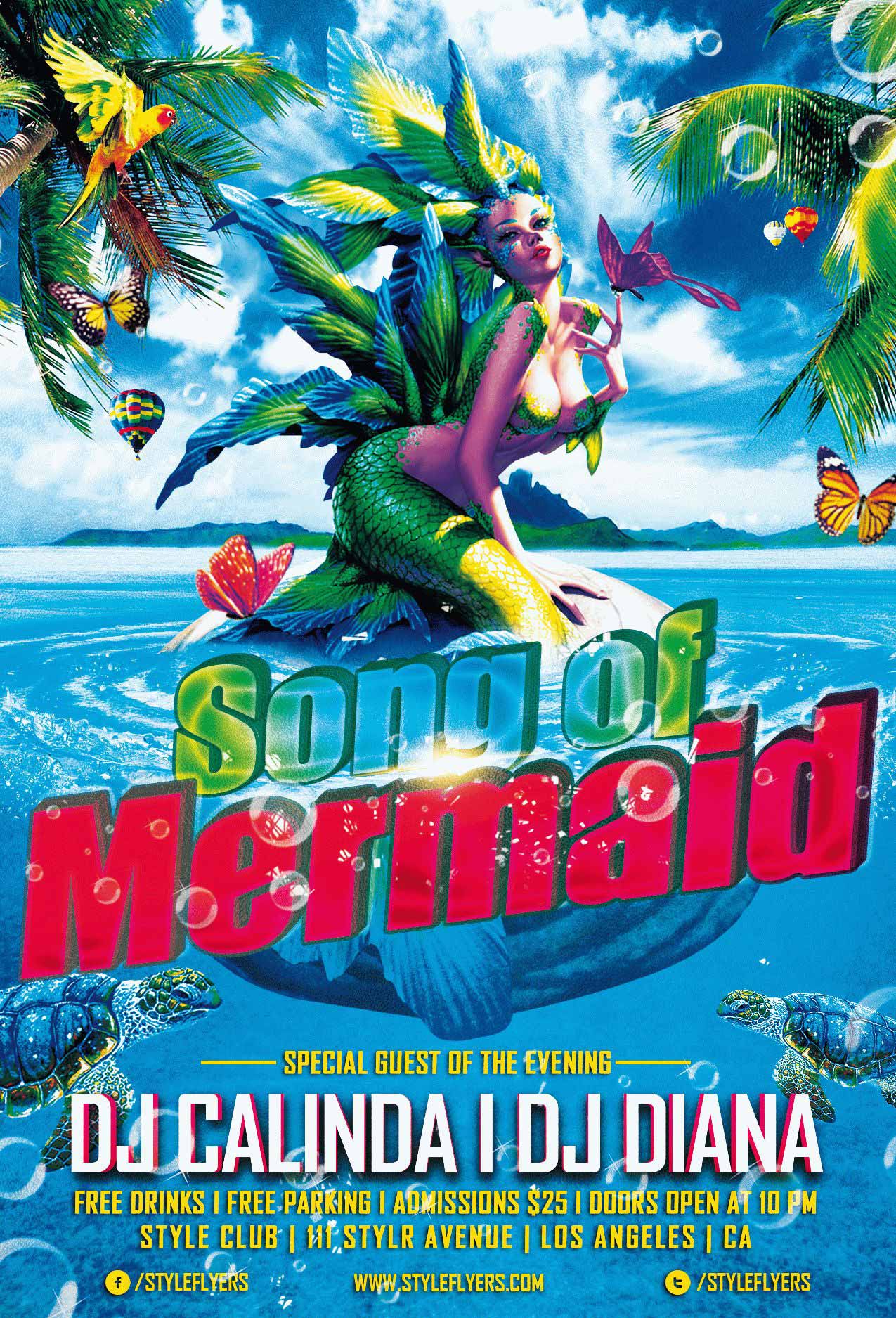 mermaid-song PSD Template Package – Professional PSD template. Fully layered, easy to customize, print-ready. Includes free fonts. StyleFlyers quality since 2013.