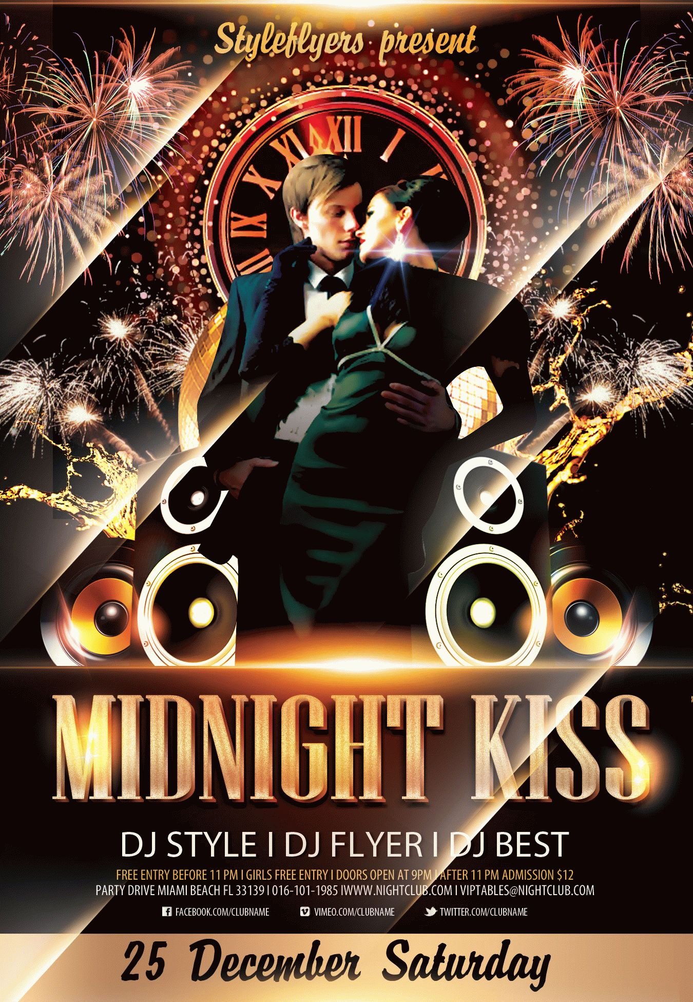 Midnight-kiss-party PSD Template Package – Professional PSD template. Fully layered, easy to customize, print-ready. Includes free fonts. StyleFlyers quality since 2013.