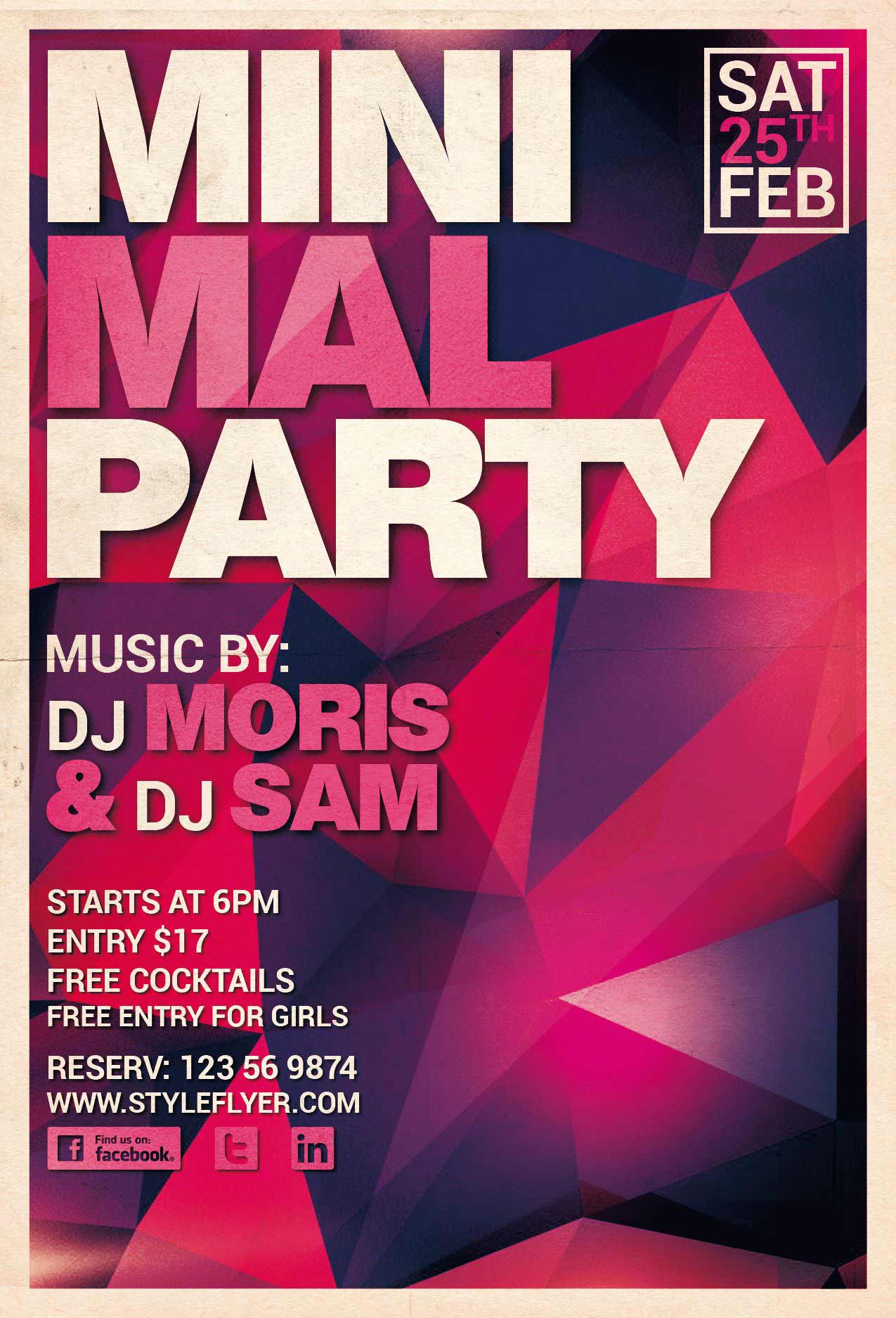 minimal-night-party PSD Template Package – Professional PSD template. Fully layered, easy to customize, print-ready. Includes free fonts. StyleFlyers quality since 2013.
