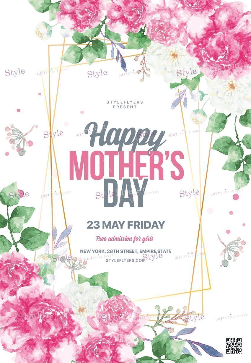 Mothers-day_psd_flyer PSD Template Package – Professional PSD template. Fully layered, easy to customize, print-ready. Includes free fonts. StyleFlyers quality since 2013.