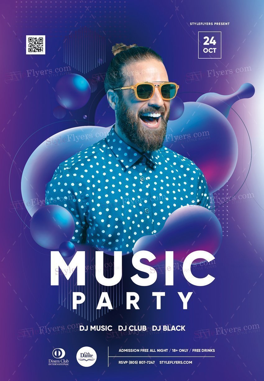Music-Party-PSD-Flyer-Template PSD Template Package – Professional PSD template. Fully layered, easy to customize, print-ready. Includes free fonts. StyleFlyers quality since 2013.