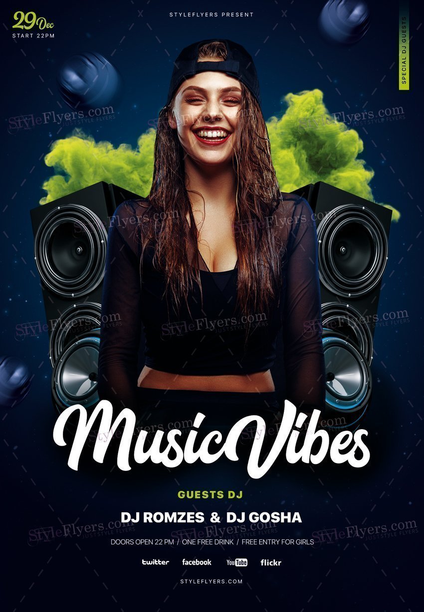 Music-Vibes-PSD-Flyer-Template PSD Template Package – Professional PSD template. Fully layered, easy to customize, print-ready. Includes free fonts. StyleFlyers quality since 2013.