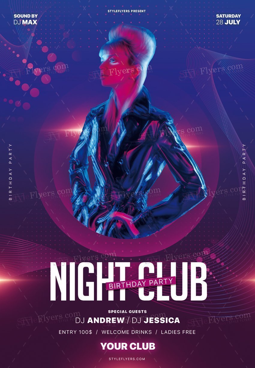 Night-Club-Birthday-Party-PSD-Flyer-Template PSD Template Package is a premium, professional PSD flyer template from StyleFlyers. For over 10 years, we’ve been providing top-quality flyers to design professionals worldwide.