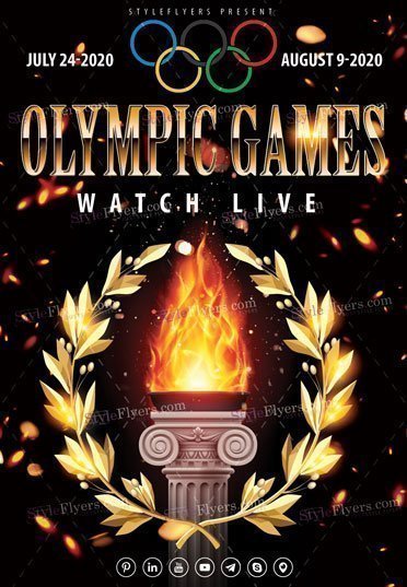 Olympic-Games-Watch-Live PSD Template Package – Professional PSD template. Fully layered, easy to customize, print-ready. Includes free fonts. StyleFlyers quality since 2013.