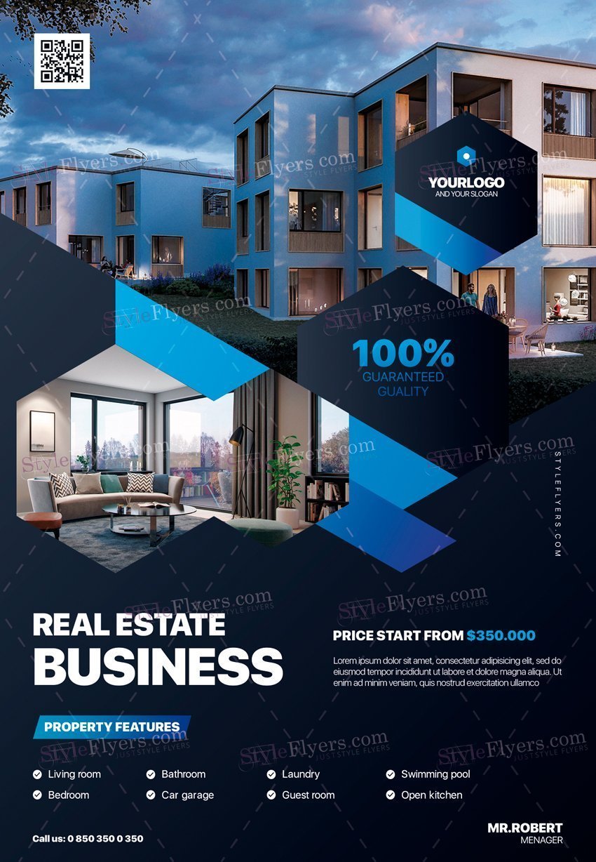 Real-Estate-Business-PSD-Flyer-Template PSD Template Package – Professional PSD template. Fully layered, easy to customize, print-ready. Includes free fonts. StyleFlyers quality since 2013.