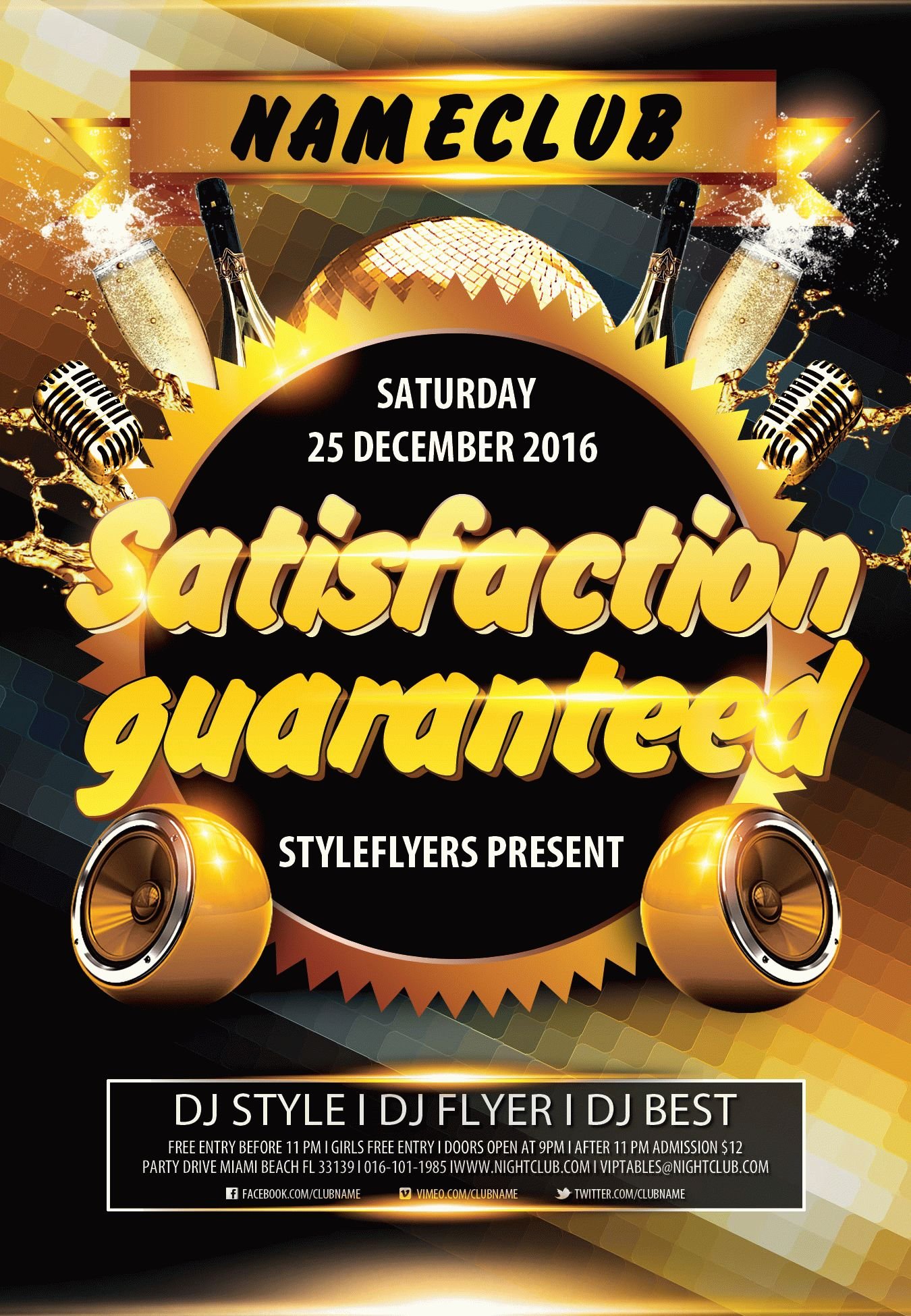 satisfaction-guaranteed-party PSD Template Package – Professional PSD template. Fully layered, easy to customize, print-ready. Includes free fonts. StyleFlyers quality since 2013.