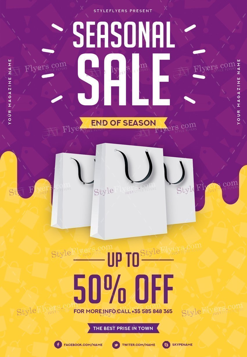 Seasonal-Sale-PSD-Flyer-Template PSD Template Package – Professional PSD template. Fully layered, easy to customize, print-ready. Includes free fonts. StyleFlyers quality since 2013.