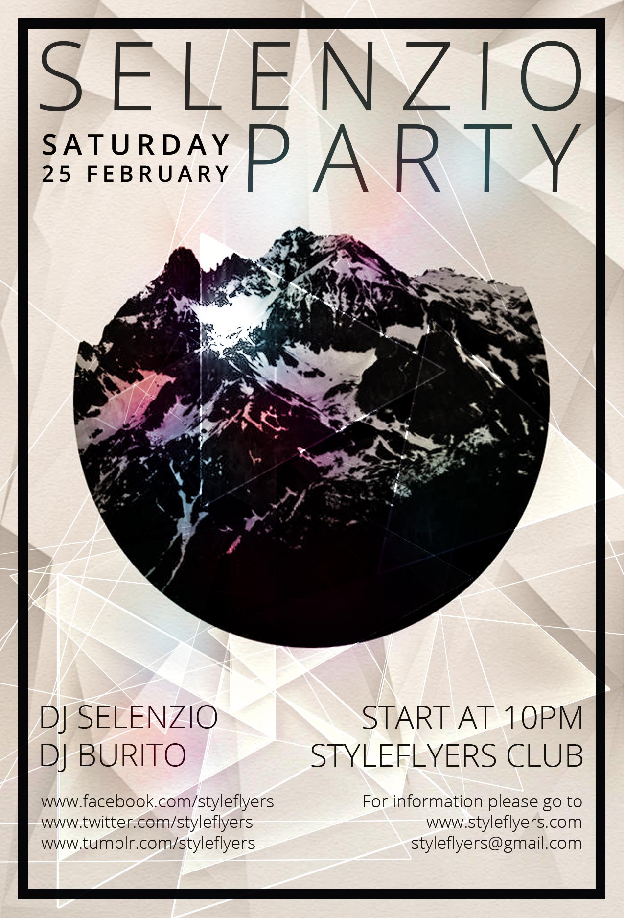 selenzio-party PSD Template Package – Professional PSD template. Fully layered, easy to customize, print-ready. Includes free fonts. StyleFlyers quality since 2013.