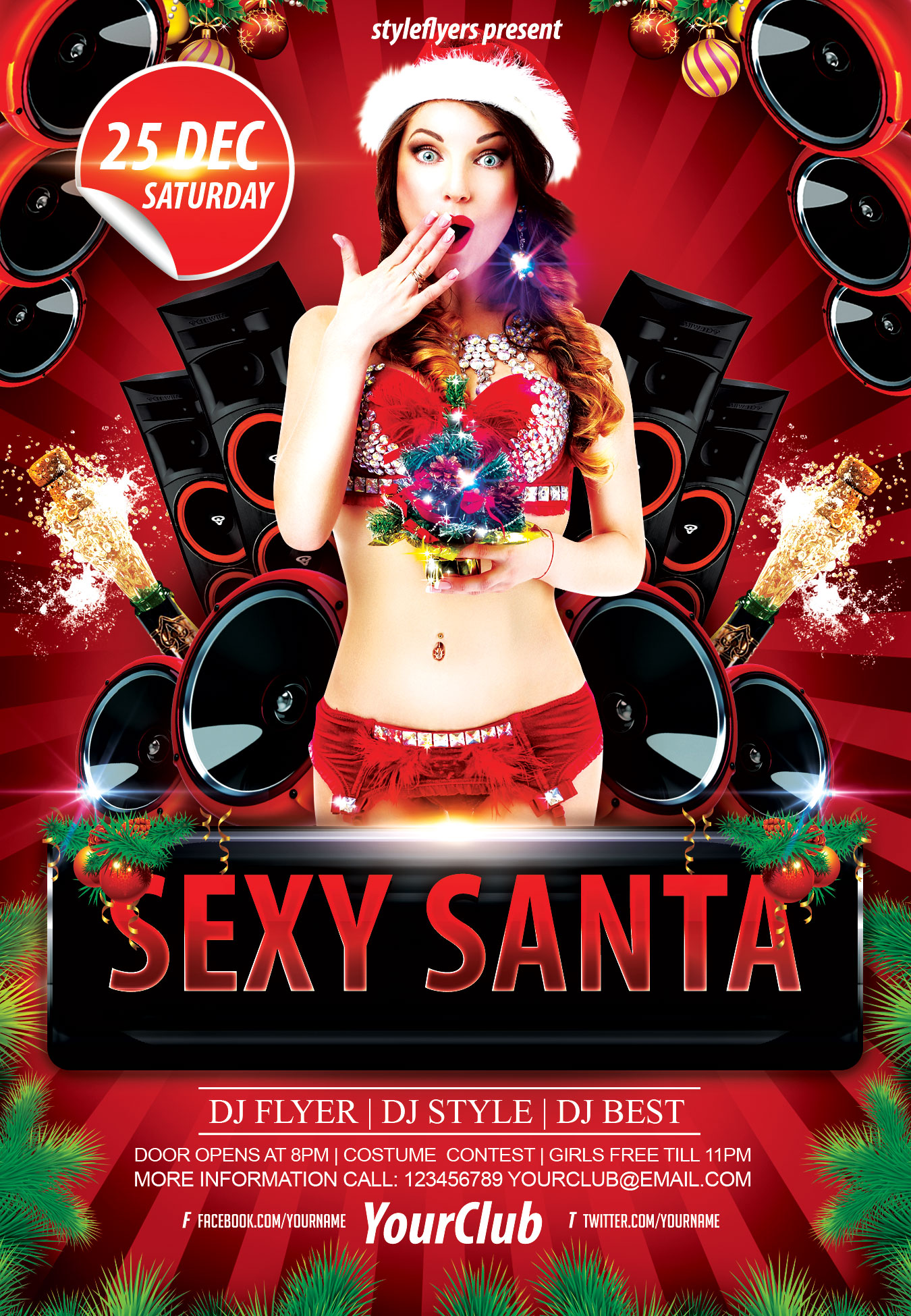 Sexy-santa-party PSD Template Package – Professional PSD template. Fully layered, easy to customize, print-ready. Includes free fonts. StyleFlyers quality since 2013.