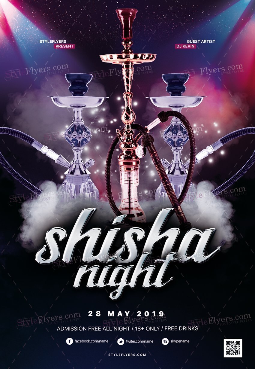 Shisha-Night-PSD-Flyer-Template PSD Template Package – Professional PSD template. Fully layered, easy to customize, print-ready. Includes free fonts. StyleFlyers quality since 2013.