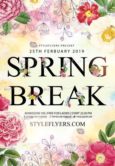 Spring-Break-PSD-Flyer-Template PSD Template Package – Professional PSD template. Fully layered, easy to customize, print-ready. Includes free fonts. StyleFlyers quality since 2013.