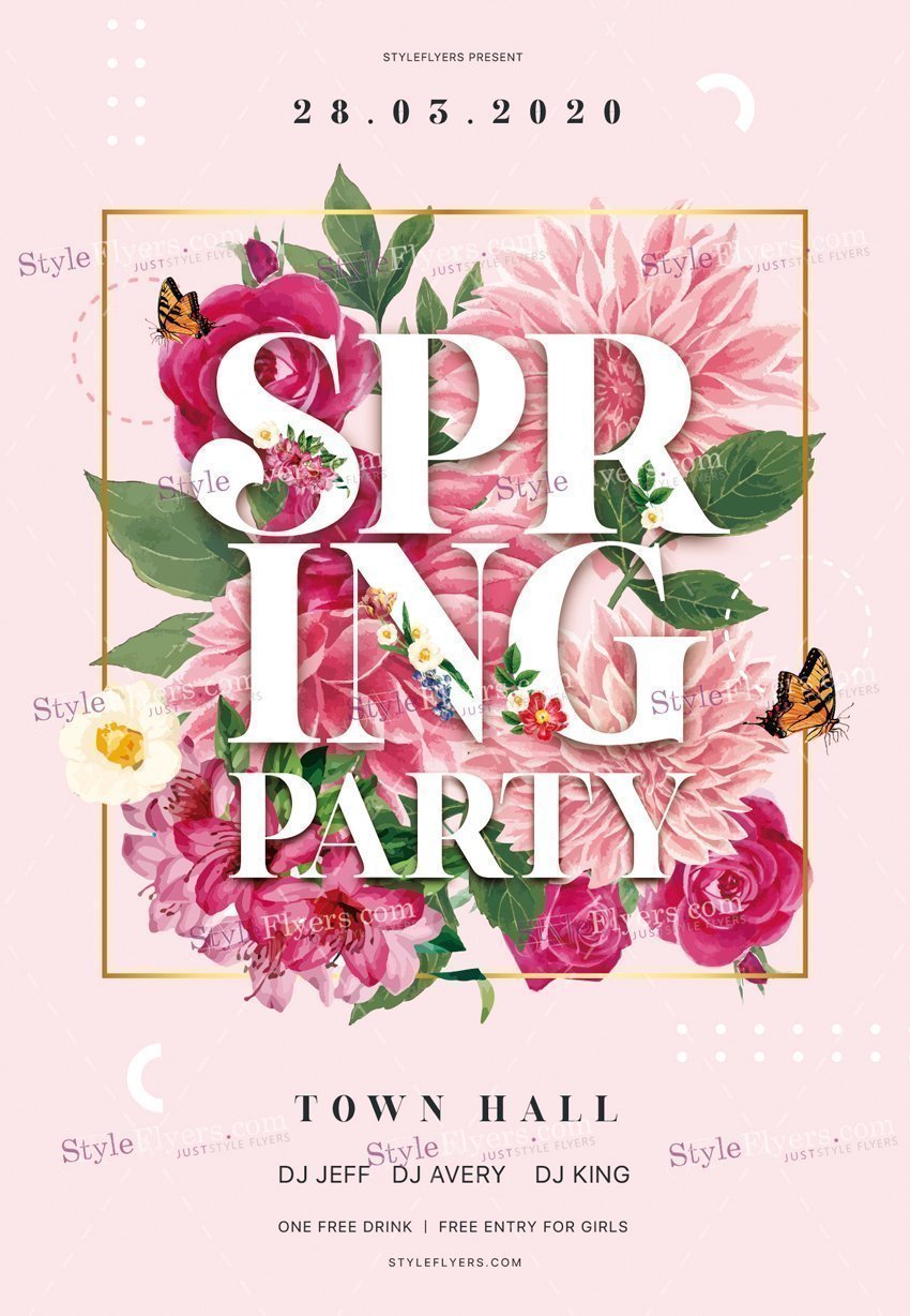 Spring-Party-PSD-Flyer PSD Template Package – Professional PSD template. Fully layered, easy to customize, print-ready. Includes free fonts. StyleFlyers quality since 2013.