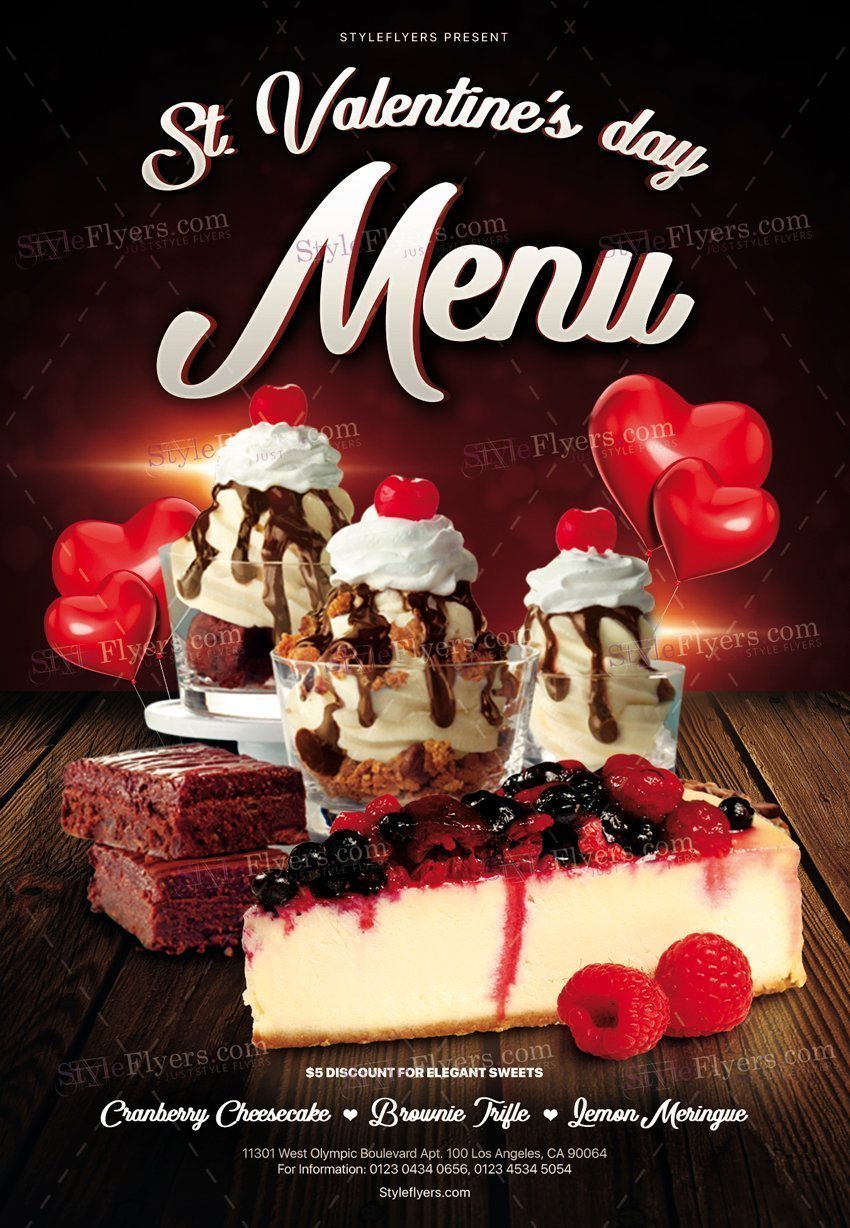 St.-Valentines-Day-Menu-PSD-Flyer PSD Template Package – Professional PSD template. Fully layered, easy to customize, print-ready. Includes free fonts. StyleFlyers quality since 2013.