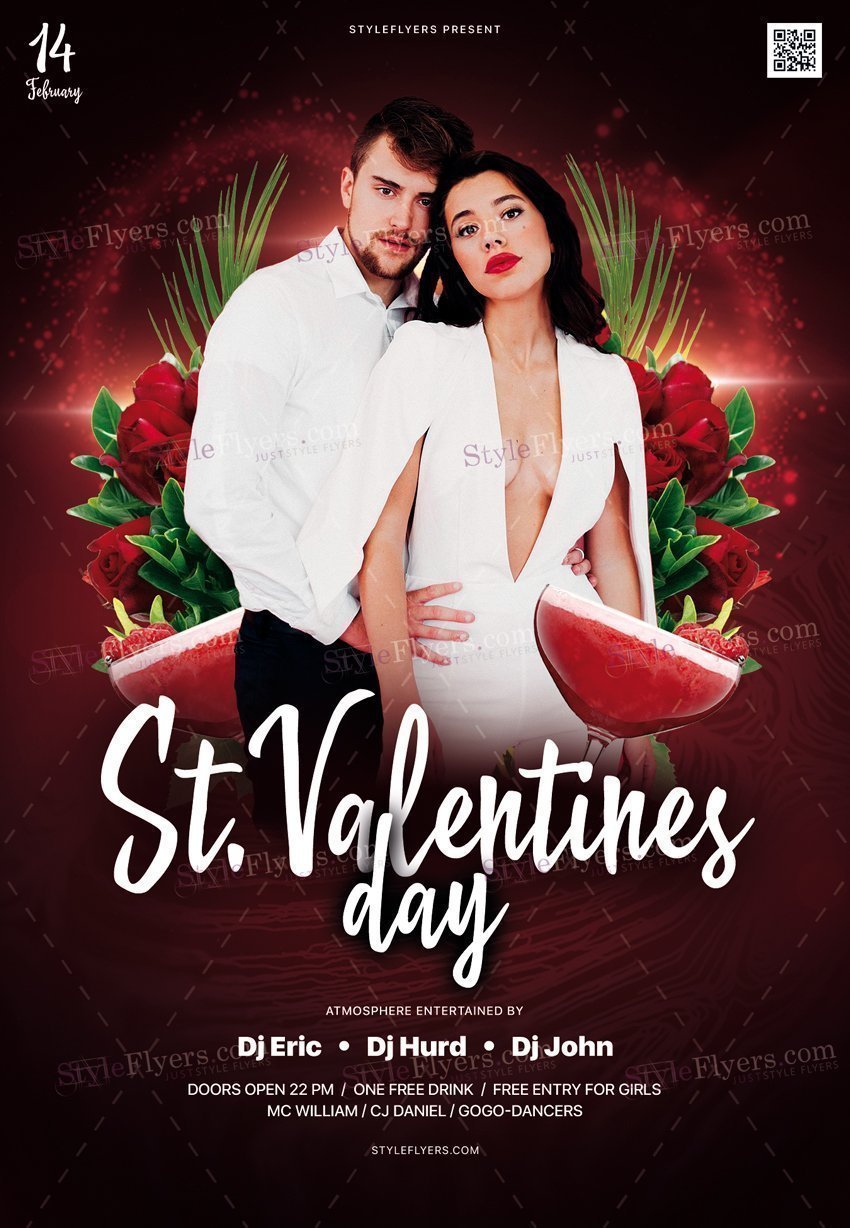 St.-Valentines-Day-PSD-Flyer-Template PSD Template Package – Professional PSD template. Fully layered, easy to customize, print-ready. Includes free fonts. StyleFlyers quality since 2013.