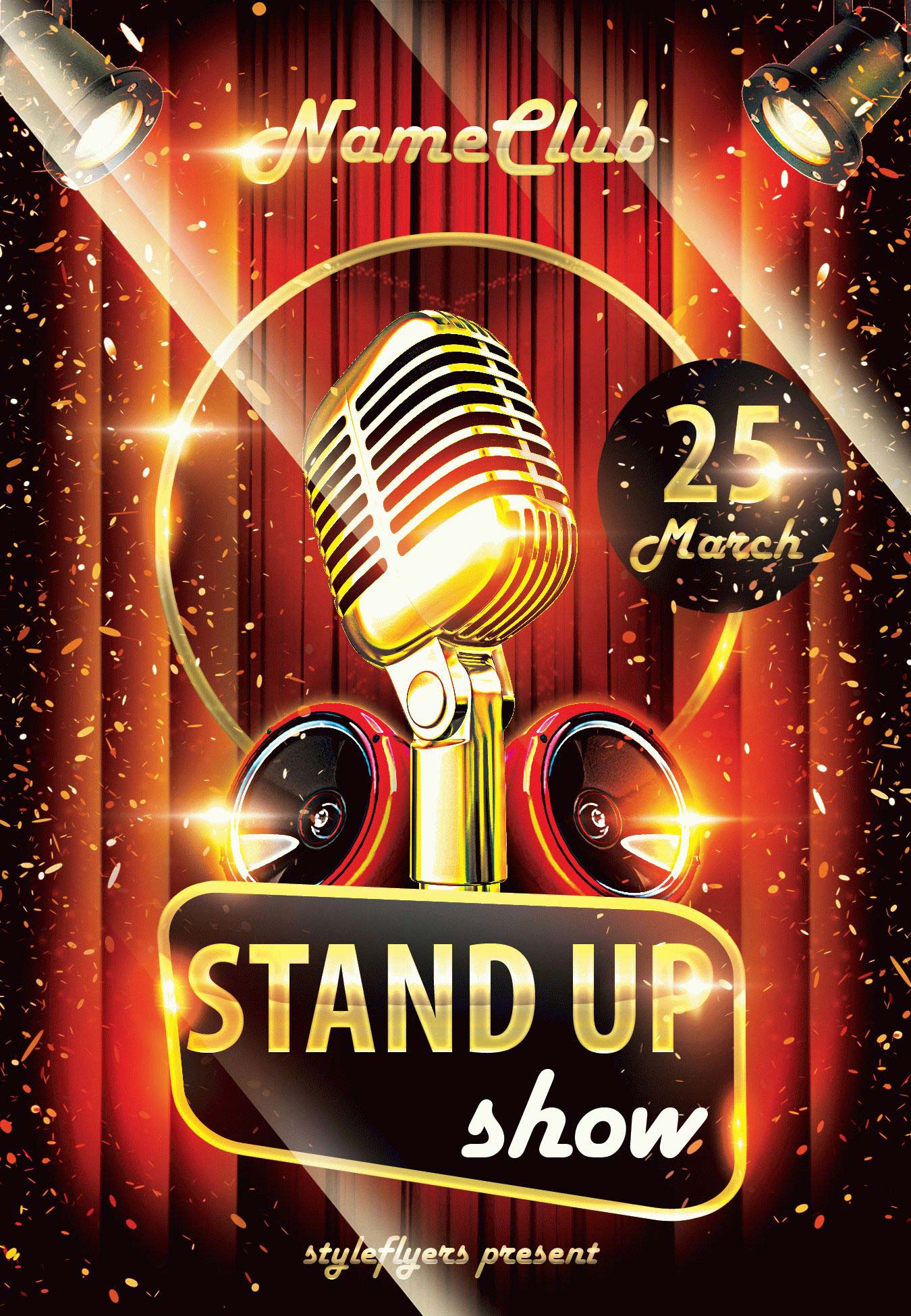 stand-up-show PSD Template Package – Professional PSD template. Fully layered, easy to customize, print-ready. Includes free fonts. StyleFlyers quality since 2013.