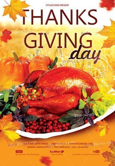 Thanksgiving-Day PSD Template Package – Professional PSD template. Fully layered, easy to customize, print-ready. Includes free fonts. StyleFlyers quality since 2013.