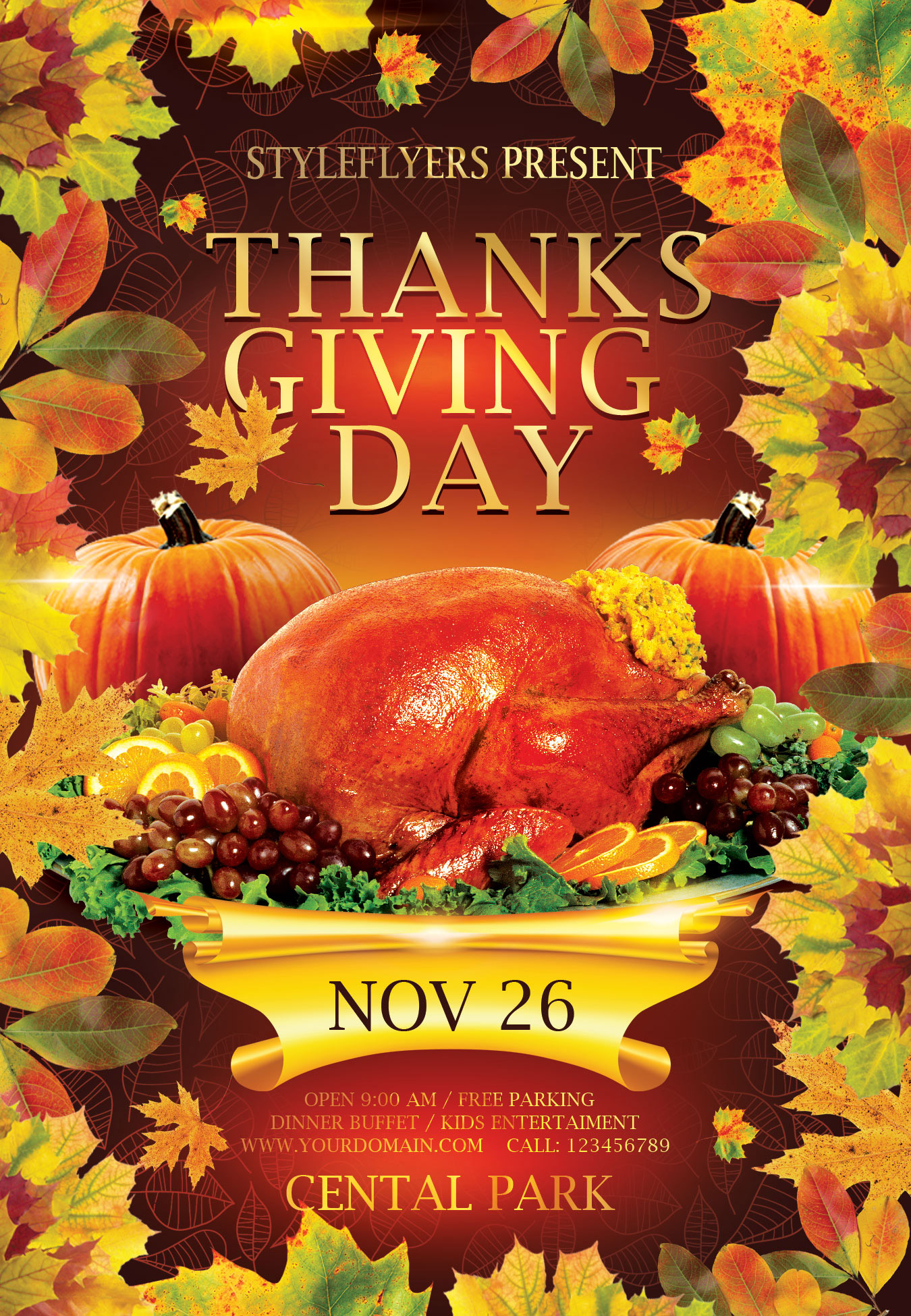 Thanksgiving-day1 PSD Template Package – Professional PSD template. Fully layered, easy to customize, print-ready. Includes free fonts. StyleFlyers quality since 2013.