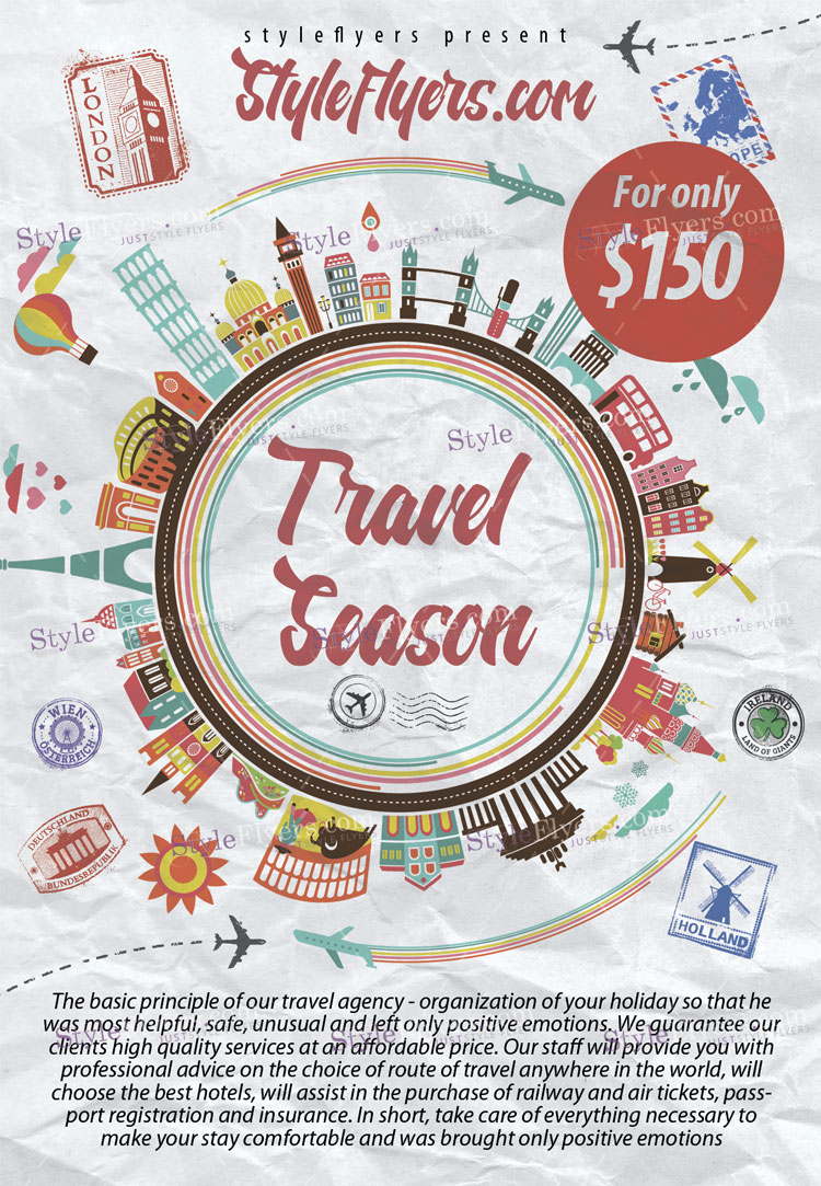 travel_season PSD Template Package – Professional PSD template. Fully layered, easy to customize, print-ready. Includes free fonts. StyleFlyers quality since 2013.