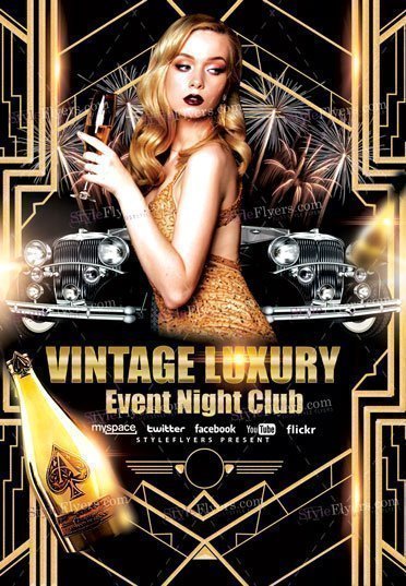 Vintage-Luxury-Event-Night-Club-Flyer PSD Template Package – Professional PSD template. Fully layered, easy to customize, print-ready. Includes free fonts. StyleFlyers quality since 2013.