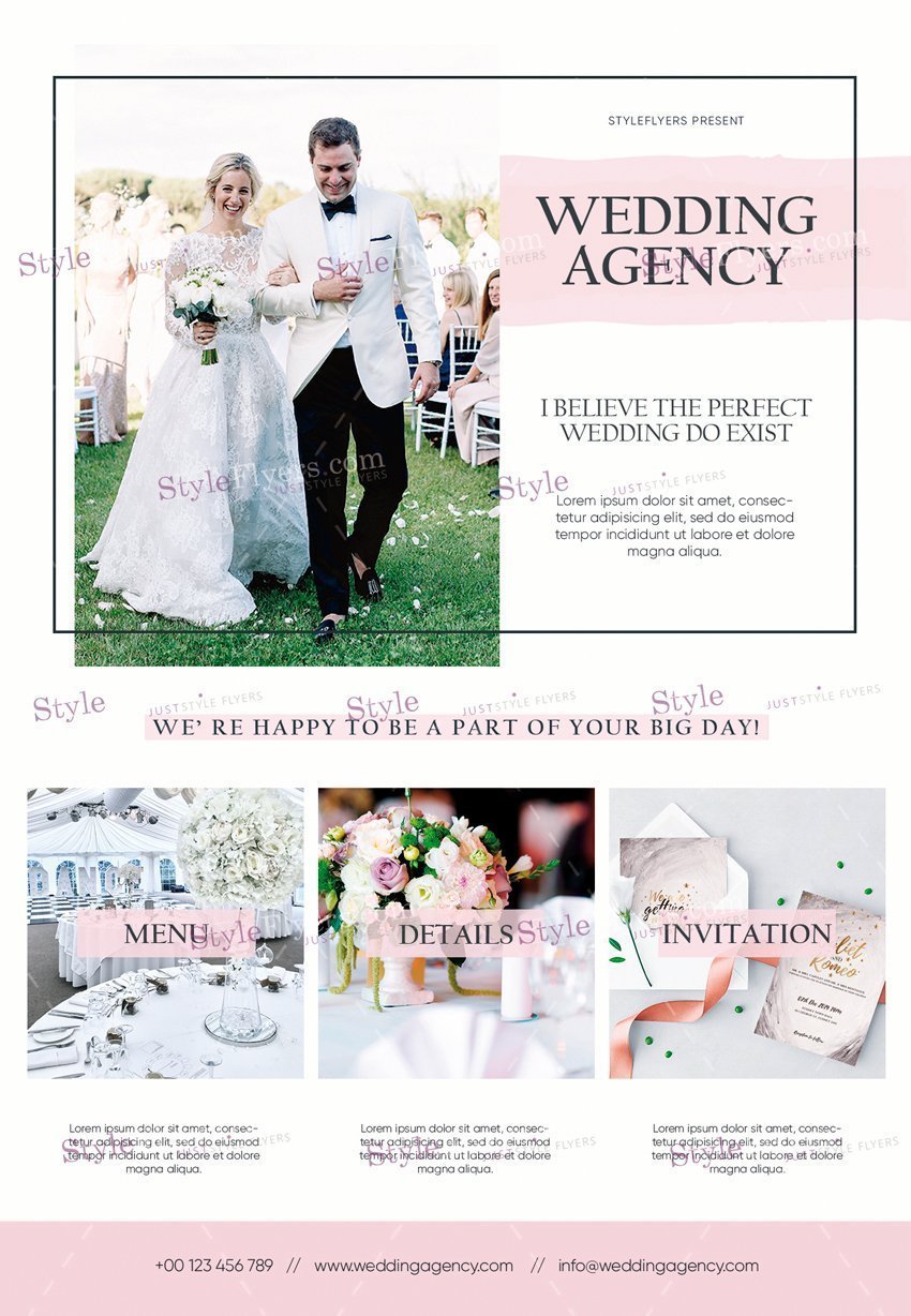 Wedding-Agency_psd_flyer PSD Template Package is a premium, professional PSD flyer template from StyleFlyers. For over 10 years, we’ve been providing top-quality flyers to design professionals worldwide.