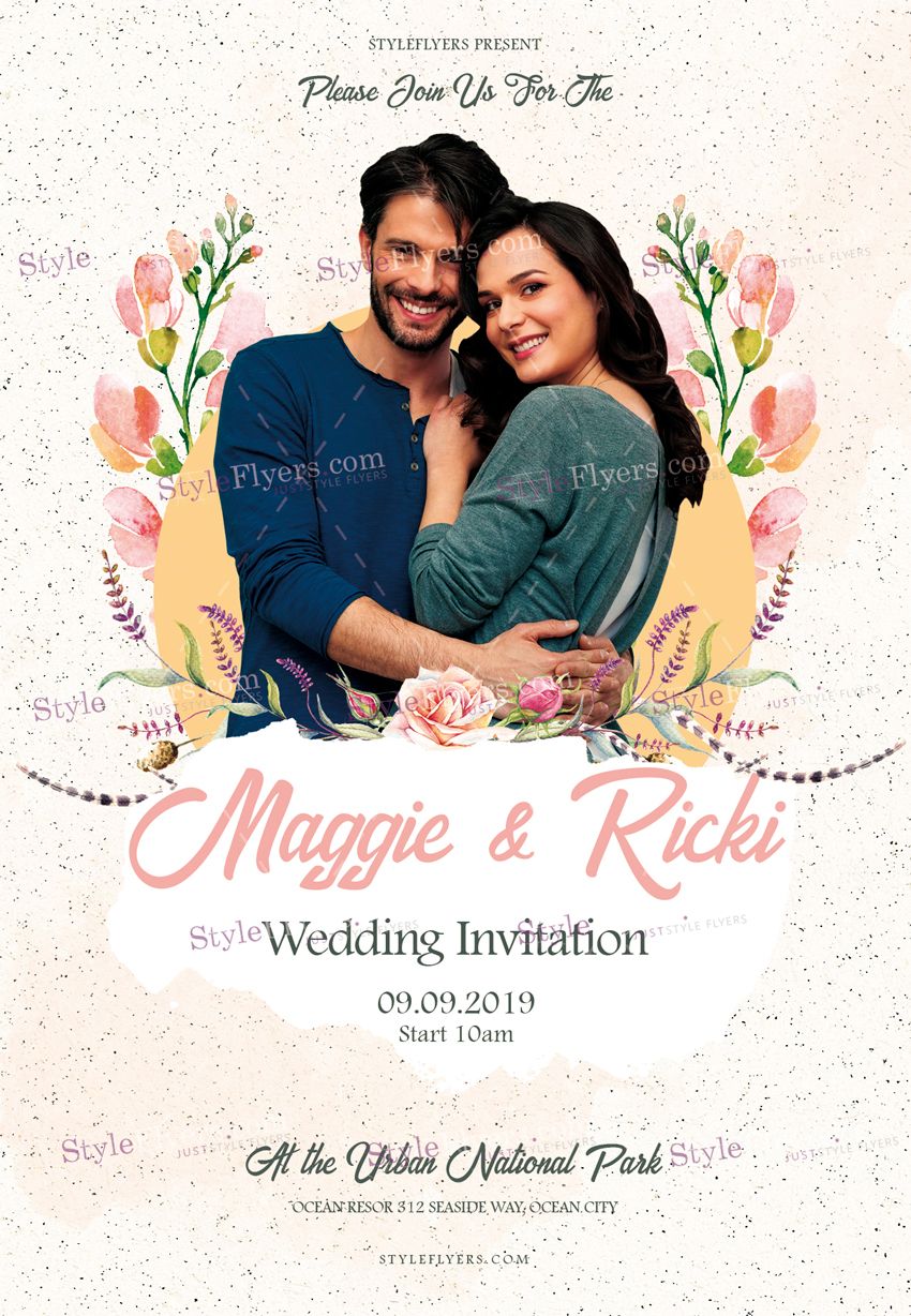 Wedding-Invintation-PSD-Flyer-Template PSD Template Package – Professional PSD template. Fully layered, easy to customize, print-ready. Includes free fonts. StyleFlyers quality since 2013.